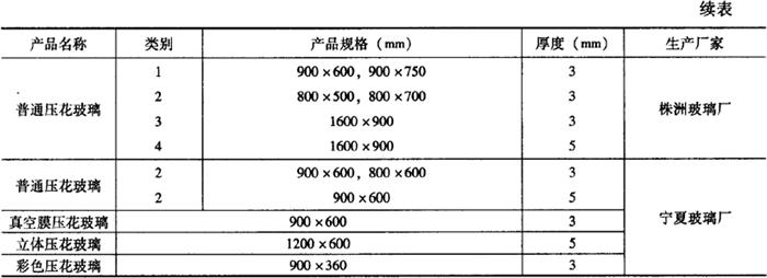 (四)压花玻璃的外观质量 我国生产的压花玻璃分为优等品、一等品和合格品,它们的外观质量要求应符合表17-41中的规定。 表17-41 压花玻璃的外观质量要求