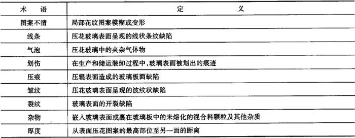表6-24 压花玻璃的相关术语