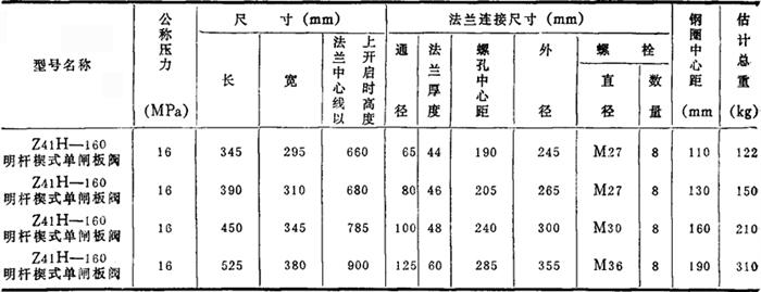 注:四川自贡高压阀门厂生产 表3-3-49 “B”型闸阀