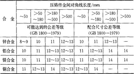 压铸件可能达到的尺寸精度及配合尺寸见表3.2-9。