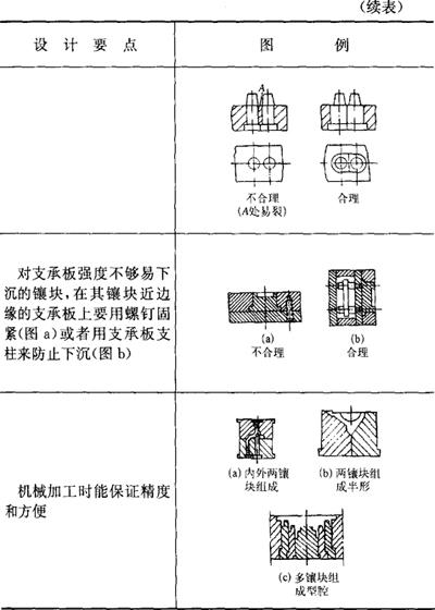 (五)镶块与芯子结构设计要点(表3.3-5)