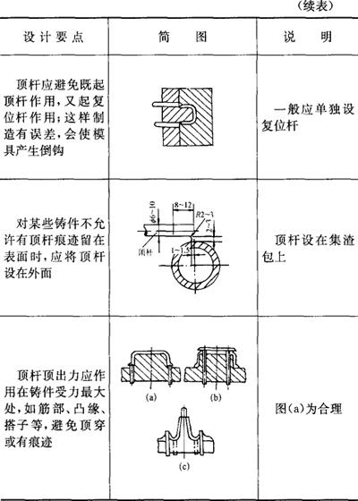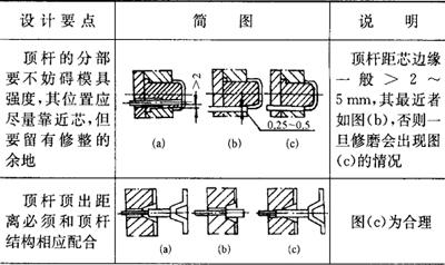 顶出机构种类很多,现以最常用的顶杆顶出机构为例,说明其设计要点(表3.3-8)。