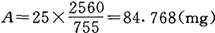 式中各字母表示:A为应称量标准粉剂毫克数;B为稀释剂的毫升数(即为容量瓶的毫升数);C为贮存液浓度(一般为1000μg/ml);D为标准粉的有效力。 例:灭滴灵标准粉的有效力D=1mg=755μg 若用25ml容量瓶(即B),配制最终浓度为2560μg/ml的贮存液(即C),应称量标准粉剂为