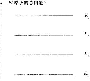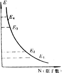 图8.2-3 原子的能级 某种原子的能级是指这种原子可能具有的能量。对于一个原子而言,在某一时刻只能处在其中某一种运动状态,或者说只能处在某一个能级上。最低的能级,即原子具有最小能量时的运动状态称为基态,其他能级称为激发态。在同一温度下,大量原子在各个能级上原子数的分布如图8.2-4所示