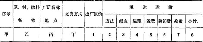 | 释义 | 原料、材料、燃料费用计算 生产用原料、材料、辅助材料、燃料等,其成本应以t(吨)为单位,按进厂价的全部费用计算,一般应包括原价、运输费、装卸费、保管费、手续费、亏损以及其他杂费。如自设矿山采掘的原料,应单独计算矿山采掘的成本。改、扩建企业则可利用该企业已有原、材、燃料到厂价格资料来计算。新建企业应会同建设单位在落实供应的基础上,逐项调查,详细计算后加以确定,可参见表5-9。 表5-9 原料、材料、燃料费用计算
