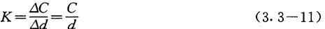 式中S为极板面积,d为极板间距,ε=8.85×10-12F/m为空气介电常数,其对间距d的放大比为: