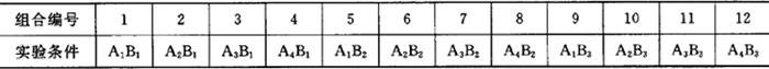 当t=1时,表明是没有重复的实验。数据的采集比较简单,每一水平组合实验所观察或测试值只有一个,列表计算比重复实验方便得多。 2.随机化方法 单因素实验是以每一个水平作为一个实验条件;双因素实验则是以其不同水平的组合作为一个实验条件。对于分别有r和s个水平的两因素,共有rs个实验条件。这时,随机化方法可分为两步进行。 (1)按实验条件编号 将因素A和r个水平A1,A2,…,Ar与因素B的s个水平B1,B2,…,Bs交错排列为A1B1,A2B1,…,ArB1,A1B2,A2B2,…,ArBs,共rs个组合的实验条件,依次编号。例如,A的水平数为4,B的水平数为3,可按表4.3.3-2形式编号。 表4.3.3-2 实验条件编号