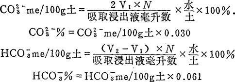 (1)因碳酸根与重碳酸根很容易互相转化,故浸出液制备后应立即进行此项分析。否则,某些土壤浸出液的pH和滴定时消耗的酸量,常因二氧化碳的逸出或吸收等原因而发生变化。