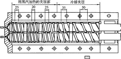 | 释义 | 双螺杆挤压机的工作特性 1.强制输送特性 从图3-6-10中可看出两根螺杆啮合状态和螺距逐渐变化的趋势。两轴之间以及轴与筒体之间都有一定的间隙,一根螺杆的螺旋齿顶插入另一根的螺槽内,两根螺杆相互啮合,螺杆转动时,随着啮合部分的轴向移动,在螺旋升角的作用下及啮合部分轴向的移动,物料不会产生倒流和停滞,这就是双螺杆挤压机固有的强制输送特性。而单螺杆挤压机中物料向前移动主要靠来自物料与筒体和螺杆间摩擦力,如果物料与筒体内壁的摩擦力小,物料将随着螺杆转动,螺纹便不能发挥推动物料前进的作用,物料将不向前输送。这就是双螺杆挤压机的优越性。