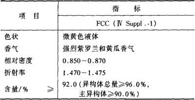 性状 微黄色液体,溶于乙醇和大多数固定油,不溶于水,沸点94℃(2399.4Pa),闪点82℃。