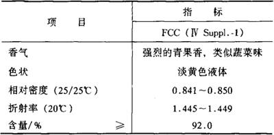 性状 淡黄色液体。几乎不溶于水,溶于乙醇、丙二醇和许多天然或合成香料。沸点47℃(2.3kPa),闪点38℃。具强烈的、青果型、刺激的、似蔬菜的香气。