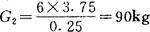 〔计算例〕 已知不等边角钢(60×40×5毫米),当L1=0.80米,G1=3.032千克,L2=11米时,求G2重量是多少?
