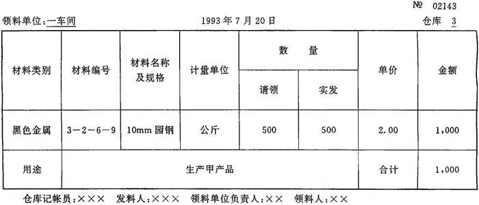 (2)限额领料单:是一种一次开设,多次使用的累计领发料凭证。在有效期内,只要不超过限额,就可以连续使用。(3)领料累计表:是一种无限额多次使用的累计领发料凭证。适用于经常领用数额较小的各种消耗性机物料、螺丝、螺帽等的领发业务,按月开设,一单一料,一式三联,领料时签收。 |