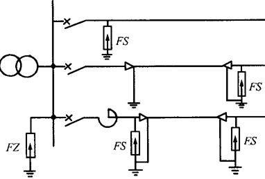 图11-20 3~10kV配电装置防雷措施 FZ、FS为阀型避雷器 表11-10 母线上的避雷器与3~10kV变压器间的最大电气距离