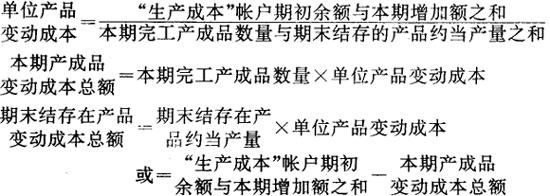 为了填列这些表帐,所需数字的计算与帐务处理程序如下: (1)将原“生产成本”、“产成品”帐户期初余额分解为变动成本与完全成本两部分,并分别填入新设置的“生产成本”、“产成品”表帐的余额栏下的“变动成本”、“固定成本”和“完全成本”栏。 (2)将本期发生的生产费用直接或经分解后记入“生产成本”表帐的借方的“变动成本”、“固定成本”和“完全成本”栏。 (3)在本期完工产品与在产品之间进行成本分配并作相应的帐务处理。本期完工产品变动成本与期末结存在产品变动成本的分配按以下公式计算: