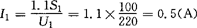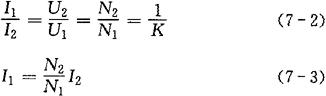 式中 I1——初级交变电流的有效值(A); I2——次级交变电流的有效值(A)。 上式说明,变压器工作时,其初、次级电流比与初、次级的电压比或匝数比成反比,而且初级的电流随次级电流的变化而变化。 [例7-2] 已知某变压器的匝数比K=5,其次级电流I2=50A,试求初级电流。 [解] 初级电流