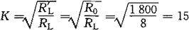 [例7-3] 已知某音响放大器的内阻R0=1.8kΩ,通过初级绕组为1200匝的变压器接阻值为8Ω的喇叭。求变压器的变比和次级绕组的匝数。 [解] 变比