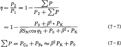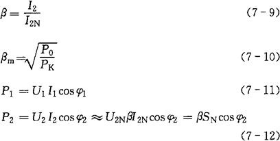 3)满负荷时,实际的输出功率 P2=SN·cosφ2 (7-38) 4)输出功率