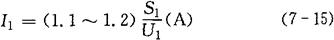 式中 η——变压器的效率。对于1kVA以下的变压器η=0.8~0.9,