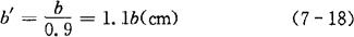 AFe=ab(cm2) (7-17) 式中 a——铁芯柱宽(cm); b——铁芯净迭厚(cm)。 根据计算所得AFe值,结合实际情况,来确定尺寸a与b的大小。 又由于铁芯用涂绝缘漆的硅钢片叠成,考虑到漆膜与钢片间隙的厚度,因此实际的铁芯厚度b′应为: