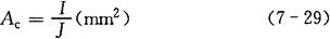 上式中电流密度一般选用J=2~3A/mm2,变压器短时工作时可取J=4~5A/mm2。若取J=2.5A/mm2时,