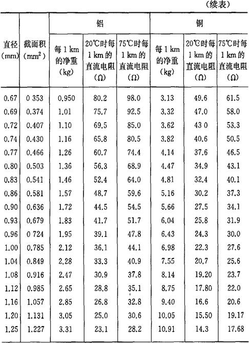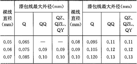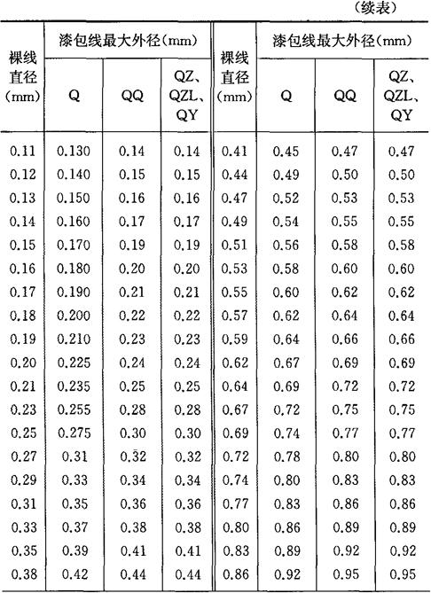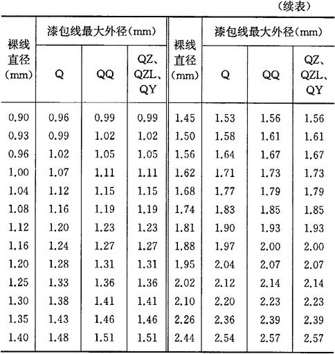 表7-5 Q型、QQ型及QZ、QZL、QY型漆包线规格