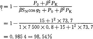 ②满负荷且负载功率因数cosφ2=0.8时的效率;