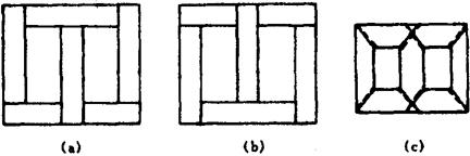 图4-3-14 三相变压器铁芯迭装图 (a)直接缝铁芯第1、3、5、…、层;(b)直接缝铁芯第2、4、6、…、层;(c)全斜接缝铁芯 按照图示方法将硅钢片迭装,当硅钢片迭到一定尺寸后,用螺杆或夹件夹紧后即成为一个坚固的铁芯整体。在装绕组时,先把上面铁轭的钢片抽出。待套上绕组后再将铁轭铁片装回去重新夹紧。这种装配方法的主要缺点是装配工艺较为复杂。 为减少夹件中的附加损耗,减少发热,在新型变压器中,推广采用非磁性材料,如用环氧树脂玻璃粘带等绑扎铁芯,以代替螺杆紧固。在小型变压器中铁芯柱的截面是方形或长方形的,在大型变压器里为了充分利用绕组内空间,铁芯柱的截面是阶梯形的,容量越大的变压器,级数愈多。中等容量变压器的铁芯柱一般为7~9级;而一些巨型变压器的铁芯柱,它的级数可以多达几十级。如平武500kV工程中,姚厂500kV升压站采用法国单相自耦旁轭式变压器(250MVA/250MVA/40MVA)铁芯柱共33级,绕组内圆空间利用率更高。为了使33级各尖角的电场分布均匀,用绝缘包一层再用金属屏蔽并与铁芯用软铜片连起来,这样放电量可降至100pC。 铁轭截面有方形的,也有阶梯形的。当铁柱为阶梯形时,铁轭也应采用阶梯形截面,这样磁通在铁轭中分布才能比较均匀。 为了保证铁芯内部的可靠冷却,在较大的铁芯中,叠片之间设有纵向和横向油道,横向油道仅在巨型变压器中才设置。 电力变压器铁芯的型式多为芯式结构,少量也采用壳式结构。芯式变压器通常采用单相二柱式或三相三柱式铁芯。大容量变压器采用三相五柱式铁芯、单相单柱旁轭式铁芯和单相四柱(二柱旁轭式)式铁芯,以降低变压器高度,便于运输。 (2)绕组:按高低压绕组的相对位置不同,绕组可分为同心式和交叠式两种型式。同心绕组按绕制方法和导线材料不同又可分为圆筒式、连续式和螺旋式及纠结式等多种,变压器绕组分类归纳如下: