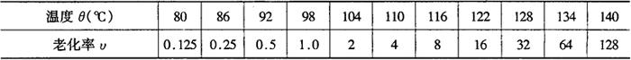 研究表明,▽为6℃左右,即绕组运行温度每增加6℃,老化加倍,这时预期绝缘使用年限缩短一半,此即绝缘老化的六度规则。根据公式可计算出各种温度下的老化率,计算结果列表于表4-3-19。 表4-3-19A级绝缘变压器在各种温度下的老化率