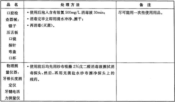 口腔器材(械)根据其污染后给病人造成的危害程度及材质不同进行不同的处理。