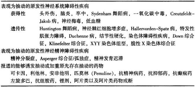 表26-3 抽动障碍性疾病的继发性原因