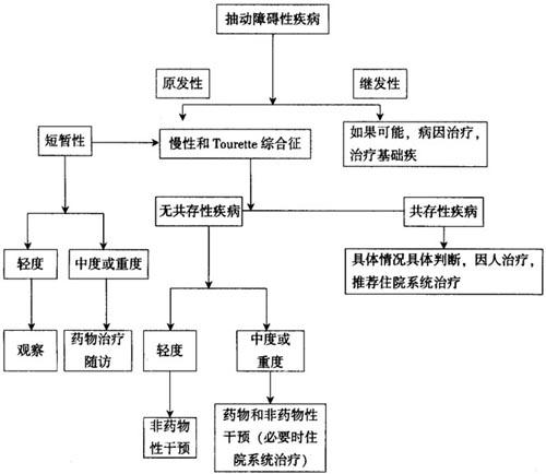 最常用的药物是氟哌啶醇和匹莫齐特(哌迷清)。也可选用α2-肾上腺素能突触前激动剂,可乐定和呱法辛,后者不要用于12岁以下的儿童。安定类药物(氯硝安定)治疗可能对部分患儿有效。约50%的病人同时伴有注意力障碍/多动障碍性疾病,25%~30%的病人伴有学习无能,25%~40%的病人伴有强迫观念与行为障碍性疾病,要具体情况具体分析,治疗不同的基础疾病和同时存在的疾病。抽动障碍性疾病的诊治流程见表26-4。 表26-4 抽动障碍性疾病的诊治流程
