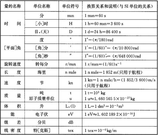 注:1.周、月、年(年的符号为a)为一般常用时间单位。