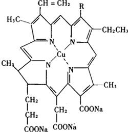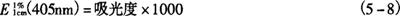 分子式:C34H31O6N4CuNa3(叶绿素铜三钠),C34H30O5N4CuNa2(叶绿素铜二钠) 相对分子质量:724.17(叶绿素铜三钠),684.16(叶绿素铜二钠) 一、叶绿素铜钠盐的鉴别 1.物理状态 为墨绿色粉末。易溶于水,略溶于醇和氯仿,微溶于乙醚。偏酸性(pH6.5以下)。如果钙离子存在时则有沉淀析出。 2.吸收峰的测定 取样品0.1g溶于水,并稀释至100mL。此液最大吸收峰为405nm与630nm,吸光度之比E405/E630为3.2~4.0。 3.铜钠离子试验 将样品灼烧灰化后溶于10mL3mol/LHCI中,在水浴上加热溶解,过滤后稀释至10mL,以此试液,进行如下试验。 3.1 取试液作焰色试验。开始呈绿色,后呈黄色。 3.2 取试液5mL,加入0.1%二乙基二硫代氨基甲酸钠溶液0.5mL时,产生褐红色沉淀。 4.pH 用重蒸馏水把样品配成1%溶液,用酸度计测定其pH为9.0~10.7。 二、叶绿素铜钠盐百分消光系数及消光比测定 1.试剂和溶液 1.1 磷酸盐缓冲液的制备(pH7.5)取0.15mol/LNaHPO421份与0.15mol/LK2HPO44份混合。 2.仪器 751分光光度计。 3.测定方法 称取经105℃干燥1h的样品0.1g(称准至0.0002g),加水溶解,移入100mL容量瓶中加水至刻度摇匀。再将上述水溶液以pH7.5磷酸盐缓冲液,稀释100倍摇匀,即为0.001%溶液,用分光光度计测定,在15min内以1cm的比色杯在405nm与630nm波长测定吸光度(E),以缓冲液作空白对照。 4.分析结果的表述