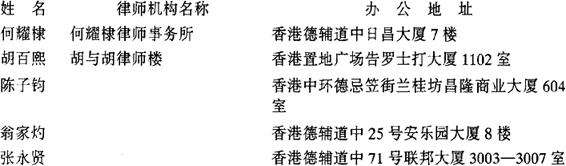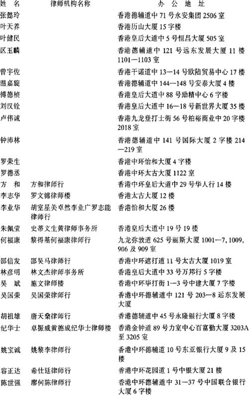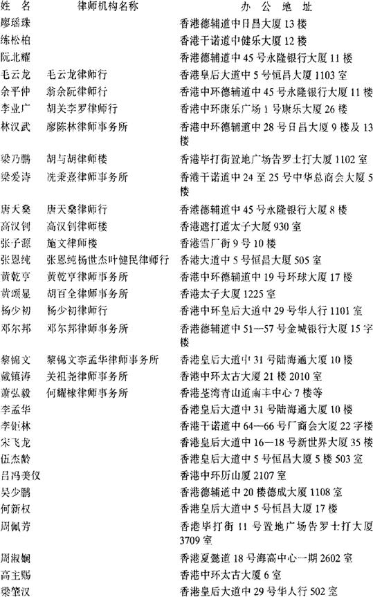 司法部委托办理公证事务的香港律师名单