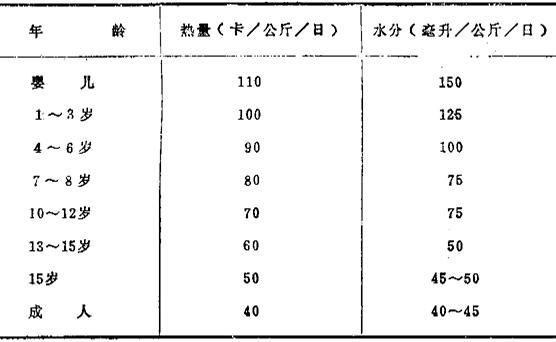 | 字词 | 各年龄小儿营养需要量 |