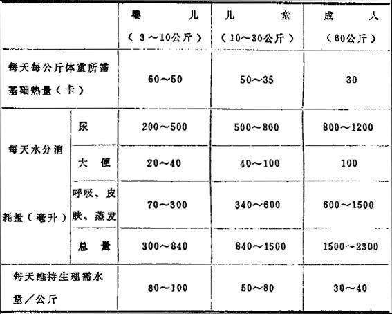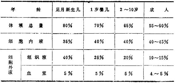 各年龄组体液分布表