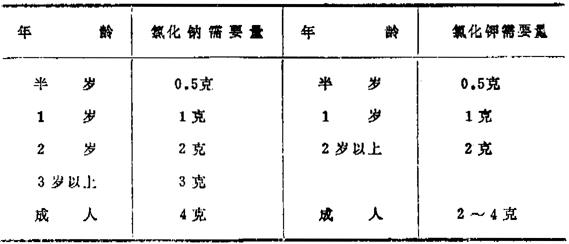 2.其他矿物质每日需要量:镁为200~400毫克;钙为1~1.5克;磷为1.5~2克;铁为6~16毫克;铜为1~3毫克;碘少量。 |