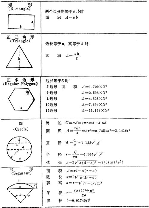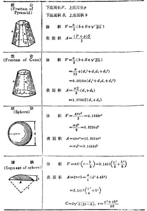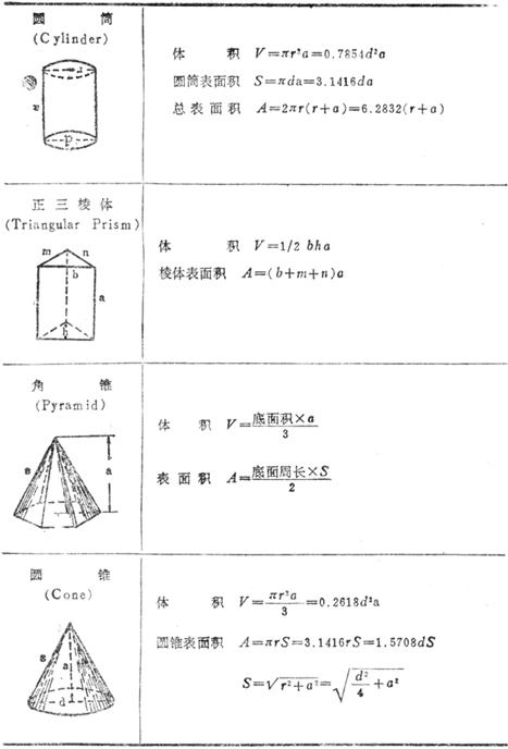 各种几何图形的面积和体积