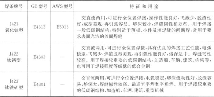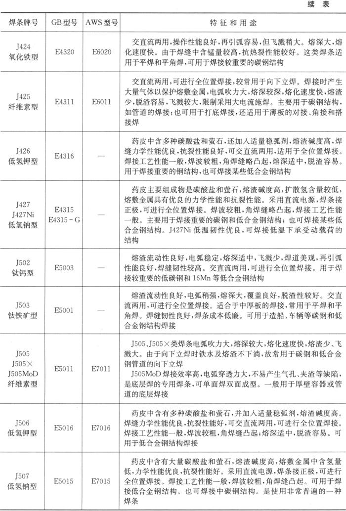| 字词 | 各种手工电弧焊用碳钢焊条选用、适用范围 |