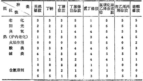 各种橡胶的抵抗性(耐久性)