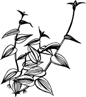图2-183 吊竹梅 (1)植物学特征。吊竹梅,鸭跖草科,吊竹梅属,多年生常绿草本花卉。茎匍匐,节上生根,分枝多,叶互生,叶片椭圆状卵形,表面紫色或紫绿色,也有杂以白色的条纹、背面紫红色。数朵花聚生小枝顶端的两片佛焰苞内,玫瑰紫色,花期在夏秋之季。 (2)对环境与土壤的要求。吊竹梅喜温暖湿润环境。耐阴、忌烈日直射。好生于疏松肥沃的砂质壤土。盆栽时宜用腐叶土、园土各4份加2份河沙拌和配成培养土。 (3)施肥技术。生长季节要保持土壤湿润,每15~20天追施1次稀薄液肥或复合化肥都可。 |