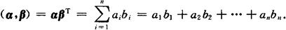 向量的内积 设n维向量α=(a1,a2,…,an),β=(b1,b2,…,bn).则α,β的内积记作(α,β),且定义为