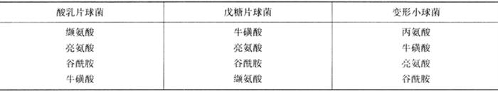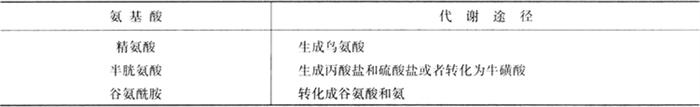 尽管在发酵香肠加工过程中总游离氨基酸的数量会增加,但某些种类氨基酸的含量却可能出现明显的降低。如精氨酸、半胱氨酸和谷氨酰胺的含量均明显下降,这可能说明这些氨基酸在香肠加工过程中发生了进一步的分解(表2-9-4)。组氨酸也可以通过脱羧作用而检测不到。尽管游离氨基酸在香气成分形成中有一定作用,但游离氨基酸组成上的差异似乎对发酵香肠的感官特性影响很小。 表2-9-4 香肠发酵过程中氨基酸可能的代谢途径