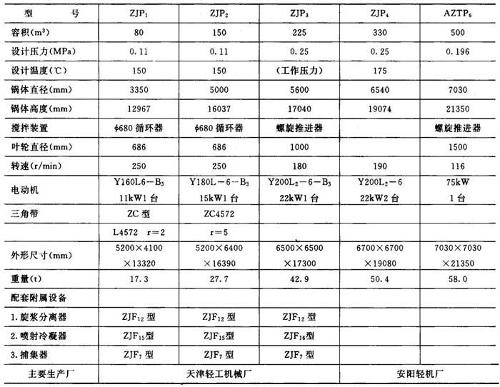 表6-3-18 锥底喷放锅主要技术特征