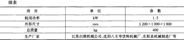 | 释义 | 喷雾式气水混合机 (一)用途与特点 喷雾式气水混合机是我国二次灌装法生产汽水中用得最多的一种气水混合机。国内有多家饮料机械厂制造这种设备,其结构和尺寸基本一致。由于二次灌装法已属淘汰的生产工艺,这种设备用得已越来越少。 本机主要用于小型汽水厂进行CO2与净化水的混合操作。在二次灌装法生产中,已混合CO2气体的净化水(即碳酸化水),通过灌水机灌装到已装入糖浆的汽水瓶中。这类混合机结构简单、使用方便,但喷嘴易堵,混合效率较差。 (二)结构与工作原理 喷雾式气水混合机结构和工作原理如图4-5-1所示。本机主要由混合桶、喷雾嘴和柱塞泵等组成。混合桶上装有压力表、液面指示玻璃管、二氧化碳止回阀和二氧化碳及水的进出口等。柱塞泵多采用三柱塞泵。本机工作原理如下:当开动柱塞泵后,泵将已冷却成低温的净化水吸入泵内,并进行加压。压力水进入喷嘴后,向混合桶空间喷出。喷嘴小孔直径为0.8~1.5mm左右。当压力水高速从小孔喷出后,压力骤然降低,喷出的液体颗粒被撕裂成细小的雾状而分散在混合桶空间。从混合桶侧面的管进入桶内的二氧化碳气体也存在于混合桶空间。这样,具有极大表面积的低温雾化净化水,就在桶内压力状态下与二氧化碳气体接触而混合。已经溶解了二氧化碳的碳酸水,随时从碳酸水出口阀向外输送。桶内的压力,是由进入呈压力状态的二氧化碳气体建立起来的。一般桶内压力控制在0.3~0.45MPa左右。 (三)性能与技术参数 这种喷雾式气水混合机,国内各厂家的性能参数相差不多,具体性能参数见表4-5-1所示。 表4-5-1 喷雾式气水混合机性能参数表