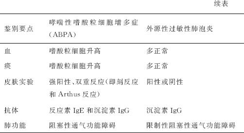 (2)变应性肉芽肿性血管炎:除哮喘、变应性鼻炎、血嗜酸粒细胞增高和游走性肺浸润影外,还表现有多发性单神经炎、其他肺外系统改变(如心肌炎、腓肠肌痛、消化系统及泌尿系统异常)和血管外嗜酸粒细胞积聚(动脉、小动脉、小静脉)。约2/3的患者抗中性粒细胞胞浆抗体(ANCA)滴度明显升高。以上表现均有助于与ABPA鉴别。 (3)本病应与各种病原体引起的肺炎(包括非变态反应性真菌性肺炎)、肺结核、支气管扩张症、支气管哮喘、肺吸虫病、肺癌、支气管中心性肉芽肿和肺嗜酸粒细胞增多症的其他病因鉴别。对同时有多脏器病变表现的患者,应进行活组织检查,以便与结节性多动脉炎鉴别。 5.热带性嗜酸粒细胞增多症 (1)支气管哮喘和喘息性支气管炎:多数哮喘发作之前有明确的变应原接触、运动、冷空气、感染等诱因,通过病史和相关检查不难鉴别。 (2)外源性过敏性肺泡炎:多与职业有关,可在吸入过敏原后数小时急性起病。患者表现为呼吸困难,胸部X线检查示肺弥漫性浸润影,但周围血、痰嗜酸粒细胞和血清总IgE可正常。 6.肺变应性血管炎与肉芽肿 诊断此病时,应首先除外感染性疾病,并与以下疾病相鉴别。 (1)支气管哮喘和喘息性支气管炎:虽可有哮喘表现,但无心脏、肾脏、神经系统等多系统损害。此外,多数哮喘发作之前有明确的变应原接触、运动、冷空气、感染等诱因。 (2)韦格纳肉芽肿(WG):也可累及多器官系统,但本病可形成鞍鼻;肺内病变多为多发性结节影,50%以上的病例有空洞;肺脏受累常见,且病情较重,而心脏和神经系统损害较少见;外周血嗜酸粒细胞正常,多见cANCA(胞浆型抗中性粒细胞胞浆抗体)升高。CSS(变应性血管炎和肉芽肿病)的病理组织中有多量的嗜酸粒细胞浸润和纤维化的倾向,而WG则很少见嗜酸粒细胞浸润;CSS组织坏死明显。 (3)结节性多动脉炎:常无呼吸道表现,但肾脏受损明显,可很快出现肾衰竭;外周血嗜酸粒细胞正常,病理检查也无嗜酸粒细胞浸润。 (4)高嗜酸粒细胞血症:可累及多脏器,特别是心脏,但无哮喘及血管炎。 (5)本病还应与寄生虫、药物等诱发的嗜酸粒细胞增多症鉴别。 |