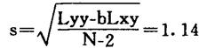 由此得氧化铜矿石选矿回收率一元线性回归方程式为: y=97.832-0.489x 这一条一元线性回归方程式表明,铜矿石氧上升或下降1%,选矿回收率相应近似下降或上升0.489%。 2、回归线的精度检查。 回归线的精度检查是计算出回归线的预报的精度,从而在置信水平(1-a)给定以后,用自变量x的值来预报因变量y的散布范围或置信区区间。因此,用下述公式求出回归直线的剩余标准离差,以表示回归线的精度。