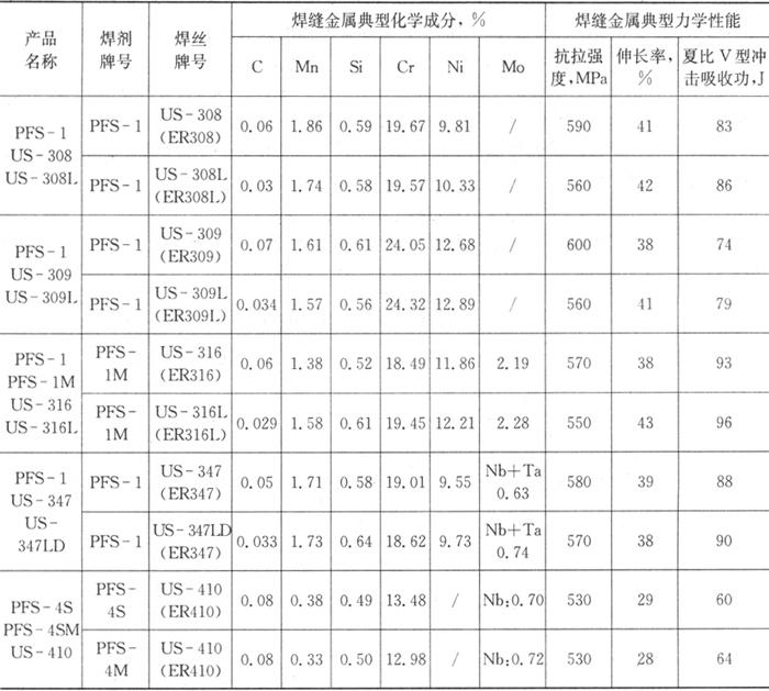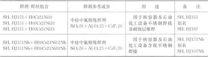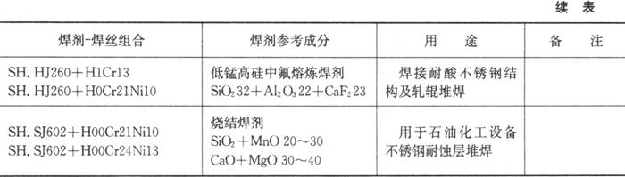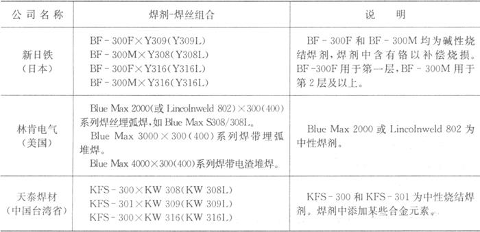 有关焊材公司推荐如下不锈钢焊剂-焊丝组合,见表3.5-7和表3.5-8。 表3.5-7 不锈钢焊剂-焊丝组合举例