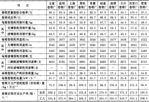 表2-5-3 1994年我国十大卷烟厂主要技术经济指标(按年销售额排列)